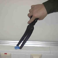 Man dreht die Zange um 180 Grad und verwendet die Schrägfläche des Greifteiles. Hinweis : Um dies zu üben, heben Sie am besten eine Münze von einer glatten Tischplatte auf. |